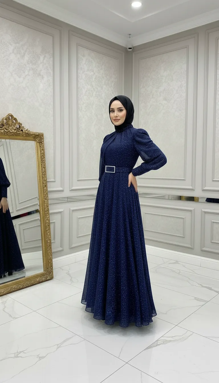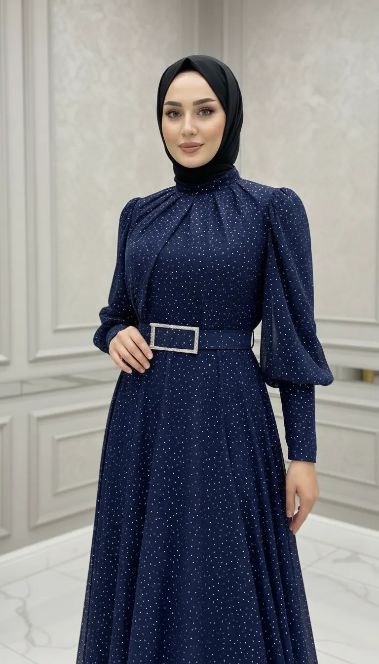 Uzun balon kolları ve bilekte toparlanan manşetleri, elbiseye hem şık hem de konforlu bir kullanım kazandırır. Esnek ve dökümlü kumaşı sayesinde hareket özgürlüğü sağlar; nişan, söz, kına, davet ve özel organizasyonlarda rahatlıkla tercih edilebilir.