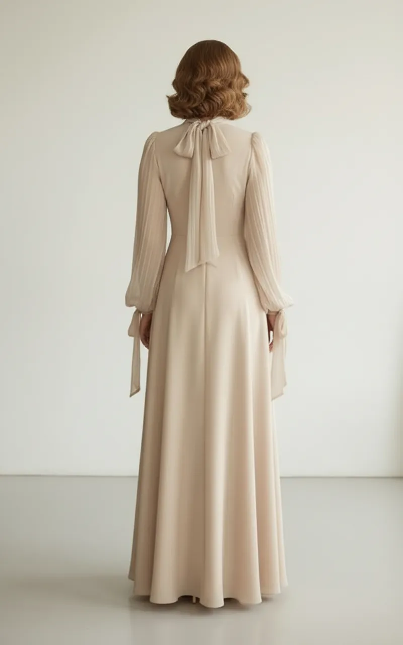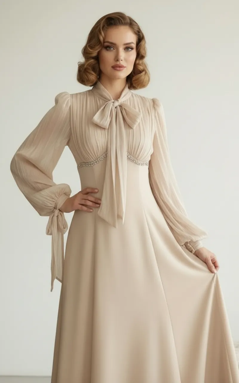 Bilekte bağcıklı, hafif volanlı uzun kollar ile zarif ve nostaljik bir stil